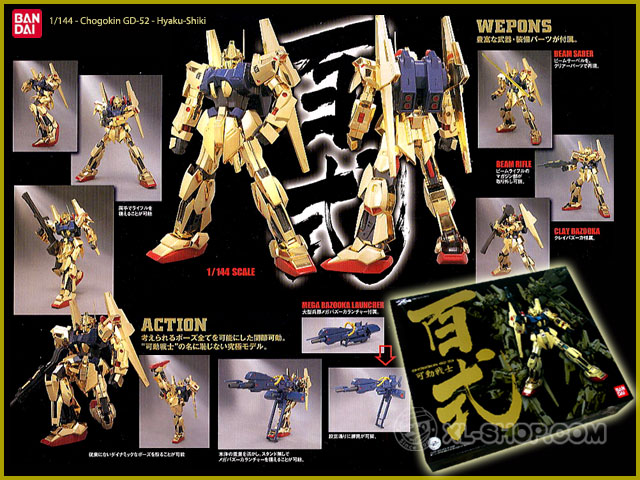 From Kado Senshi series, Chogokin GD-53 MSN-00100 Type 100 Hyaku-shiki. High mobility with pose. This box set include the Mega Bazooka Launcher together with others weapons.