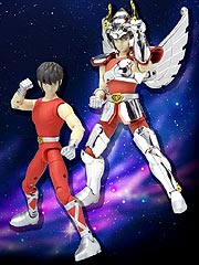 Saint Seiya DX Pegasus Seiya from Bandai. The figure is about 8" tall and fully poseable. Comes with various accessories. If you are Saint Seiya fans, don't miss!