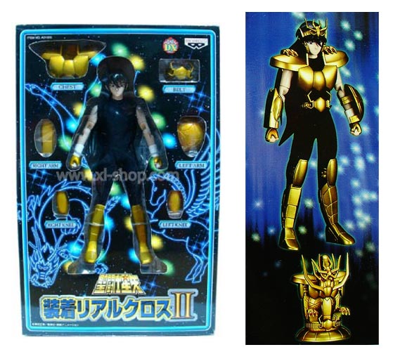 Banpresto DX - Saint Seiya 6" Real Cloth Action Figure - Siryu Gold. Stands around 6" tall with various accessories.