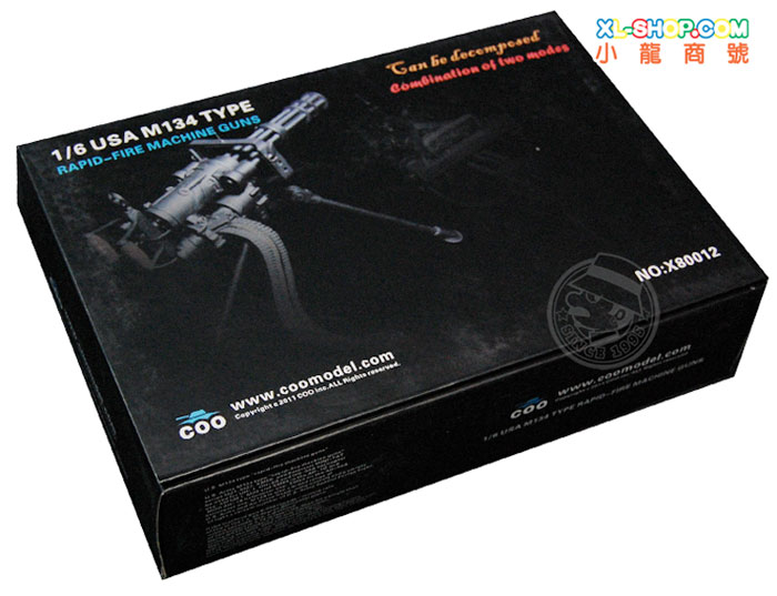 COOMODEL x80012 US M134 1:6 model of high-precision miniature Description: This product is a total combination of 63 components, in addition to the fixed part of the product is free to break down, and in order to use a wider range from the product and the combination of two modes (with combined manual): 1,Portable 2,Floor type (can be fixed 1:6 vehicles); Quality: In order to better meet product quality, in plastic + aluminum metal material, the quality of some use of aluminum metal, precision plastic molding parts. Packaging: This product does not affect the transport of the damage caused by the plastic and cardboard packaging; Weight:Long 29CM X Wide 20CM X High 8CM(1set) 0.22KG