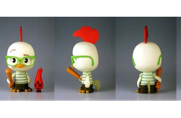 This adorable Chicken Little vinyl doll was released as a promotional item for Disney staff in conjunction with the upcoming Disney Animation - Chicken Little. It comes with a bat, his glasses, and his little alien sidekick. Don't miss this cutie little chicken !