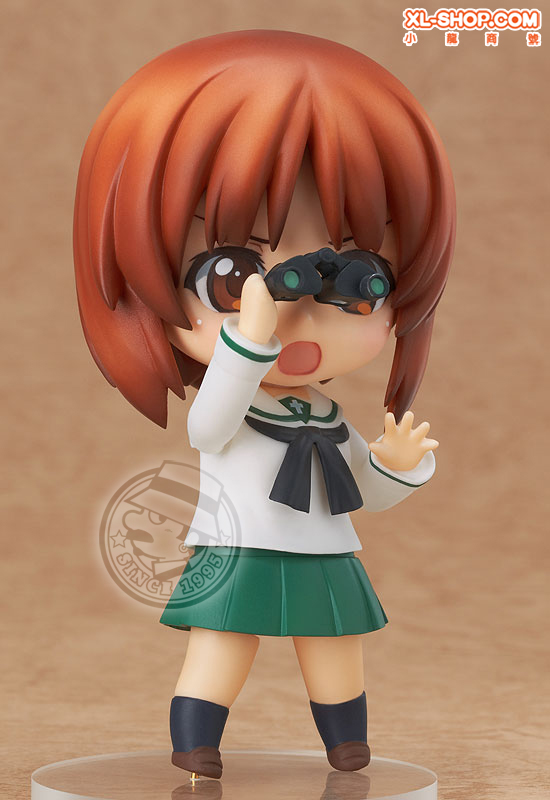 From the anime series 'Girls und Panzer' comes a Nendoroid of Miho Nishizumi, the shy and gentle girl who becomes much more outspoken when it comes to tanks. She is sculpted wearing her Ooarai Girls High School uniform and comes with a number of extras needed for tank combat, such as headphones and binoculars. She also comes with both a smiling expression for more relaxed scenes and a tense expression more suited to combat scenes.