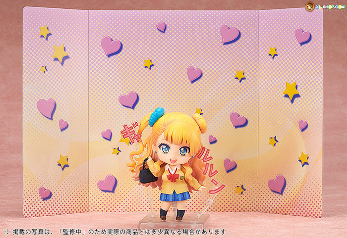 Optional parts include her school bag, a book as well as text parts that read 'Gyarurun' to display beside her. The inner cardboard sheet of the packaging features a special background allowing you to recreate the popular scene from the anime series.
