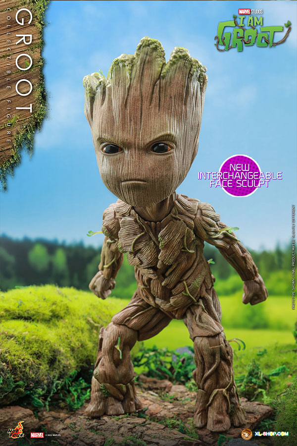 Skillfully crafted based on Groot’s appearance in the series, this 26cm tall Groot figure features three interchangeable face sculpts with laughing, smiling and furious expressions; sculpted tree texture on the specialized body. Clumps of greenery giving Groot alternate looks from leafy hairdos, body, to impressive bushy mustache and biceps. Also the must-have accessories include cucumber slices for relaxation and Groot’s drawing of the Guardians of the Galaxy family.