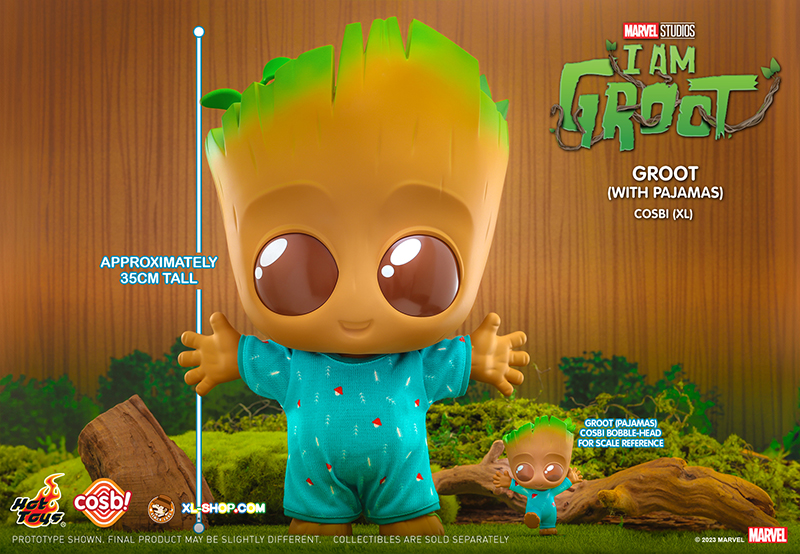 Features one of his iconic looks, Groot is in a tailor-made fitted cozy pajamas made with real fabric. Comes in open armed, Groot is waiting for you to pick him home. Collectible measures approximately 35 cm tall.