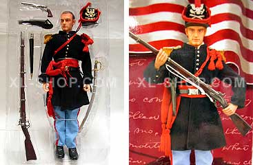 12 inch American Civil War Confederate (Blue Uniform) from IGNITE Toys. Package comes with one 12" action figure, uniform, weapons, and accessories. Highly flexible 12" body, authentic uniform featuring fully detailed decorations, life-like head with character, triple jointed arms and legs allow the figure to perform difficult poses, each piece of equipment is accurately reproduced in 1/6 scale (12").