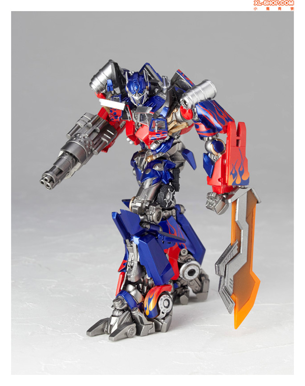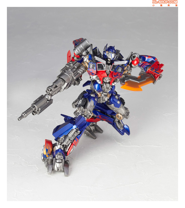 "Transformers (THE TRANSFORMERS)" deformation robot toy series that was born in the 1980s, than Transformers series, which is live-action movie, figurine the [Optimus Prime] from "Dark Side of the Moon" and the action in robot form and pursue a thorough form, can be reproduced leave swordfight action in the play at will pose such as the knee is also available standing or roundhouse kick complex-mechanical design portion is also precise modeling, as the action figure and form of the robot moving finely divided parts for that are both the result to reproduce blade and machine gun that appeared in-drama comes, machine gun consisting of five pieces assembled through a revolver each, you can reclassified to the shape of your favorite - machine gun with demolition, provided in the figure body be in original equipment should be installed in the hole of the revolver for also possible.