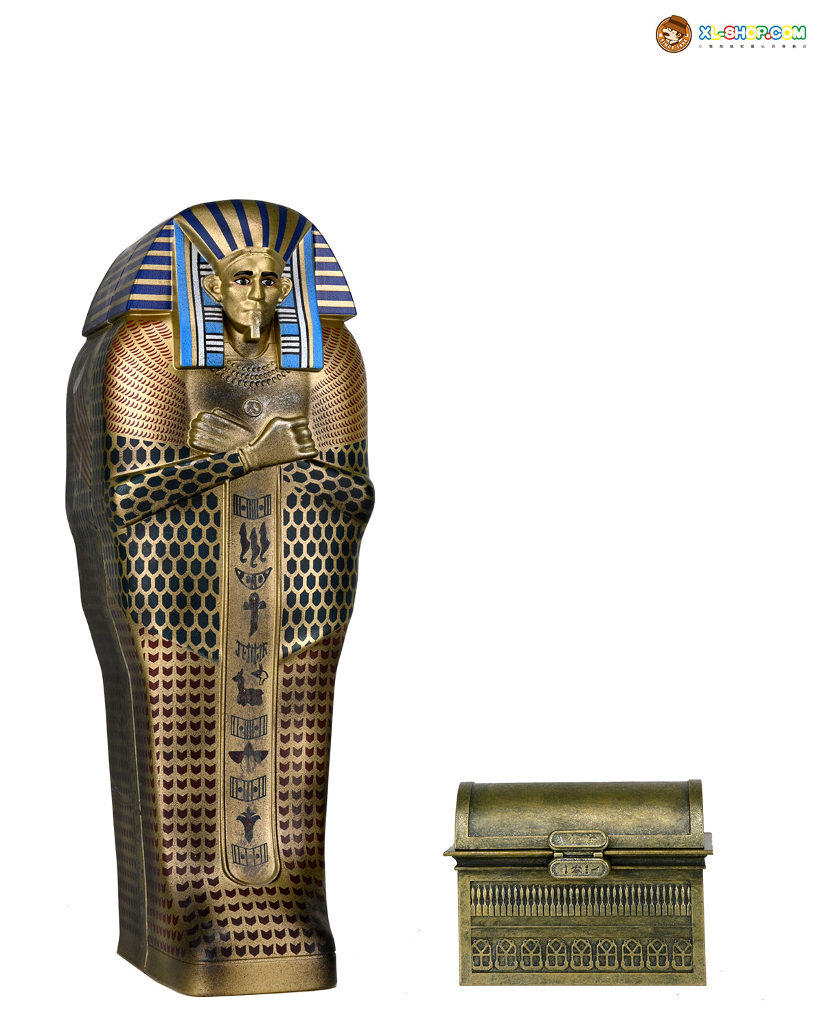 The star of the set is the elaborate sarcophagus, which measures over 9” inches tall and has a removable lid with movie accurate deco and intricate printed pattern.