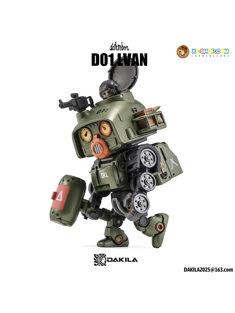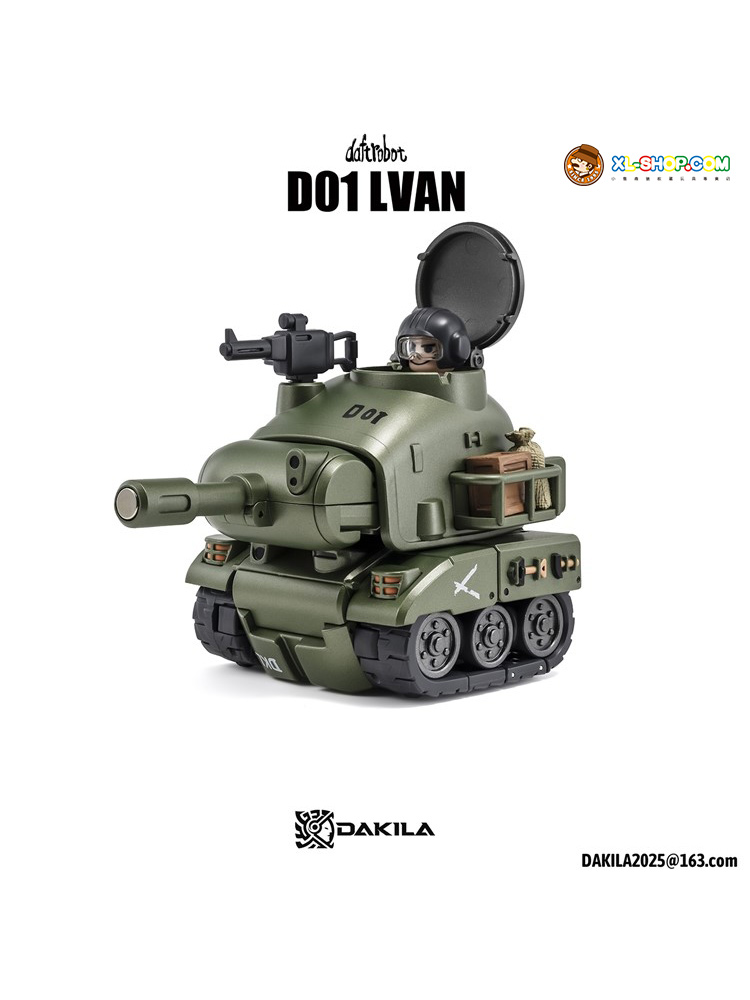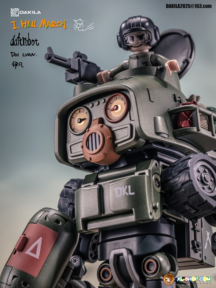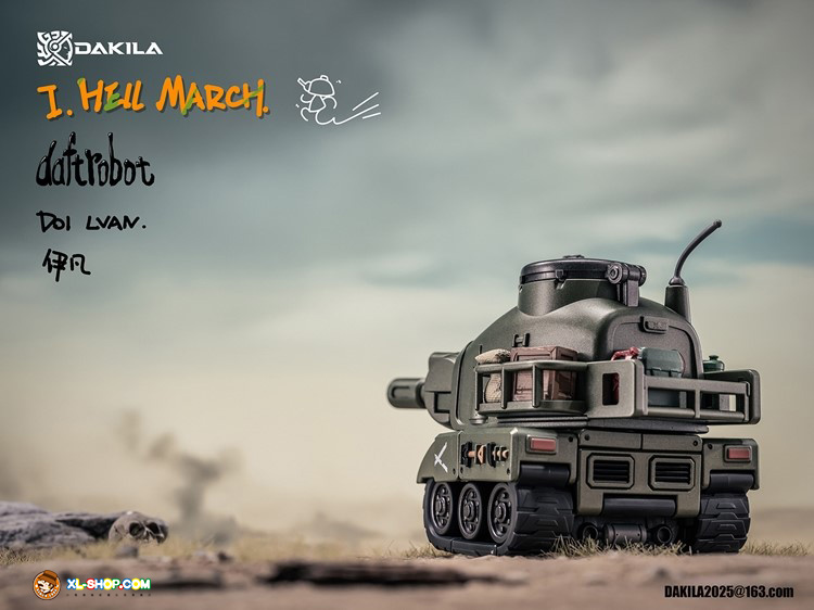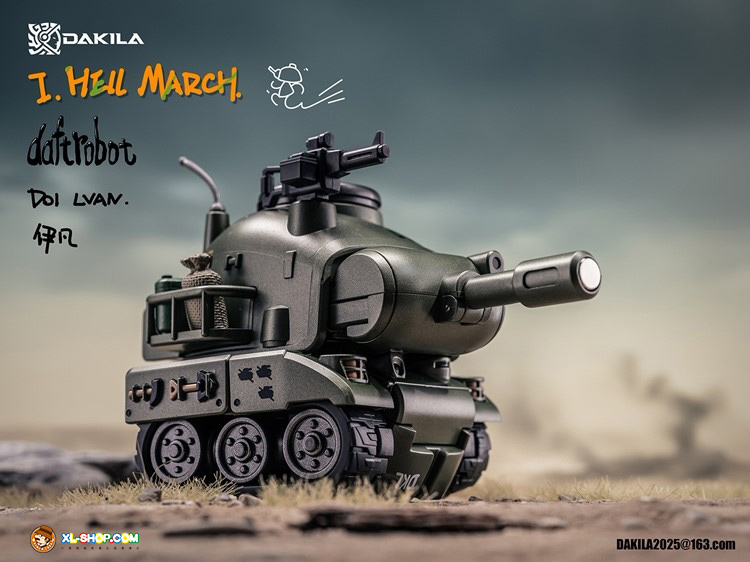 Dakila presents the Daftbots Series Hell March LVAN action figure! This LVAN figure has the ability to convert between a robot and a tank. In robot form, LVAN has mobility in his arms, legs, and even his eyes! In tank form, he can roll smoothly over flat surfaces. A small figure is included that can sit in both robot and tank modes.