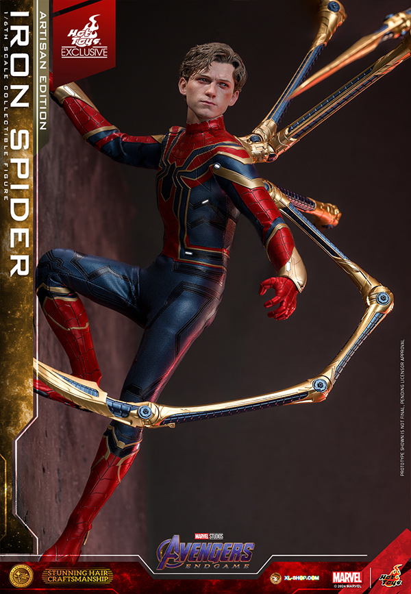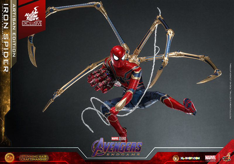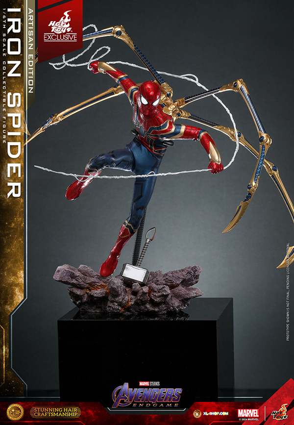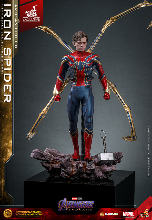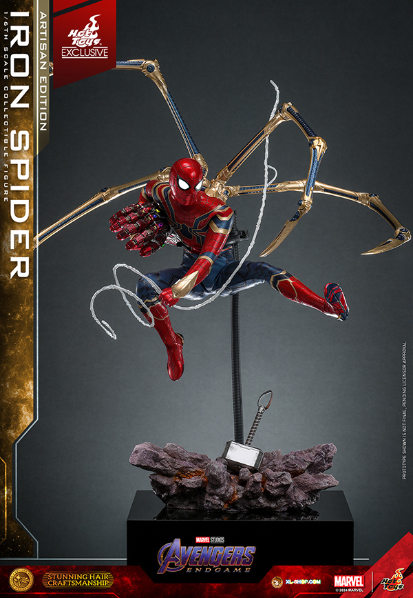• One (1) set of four-legged gold-colored Iron Spider pincers (magnetically attachable; with articulated function)