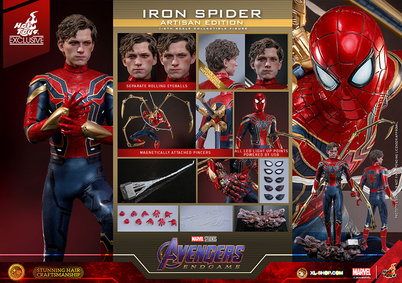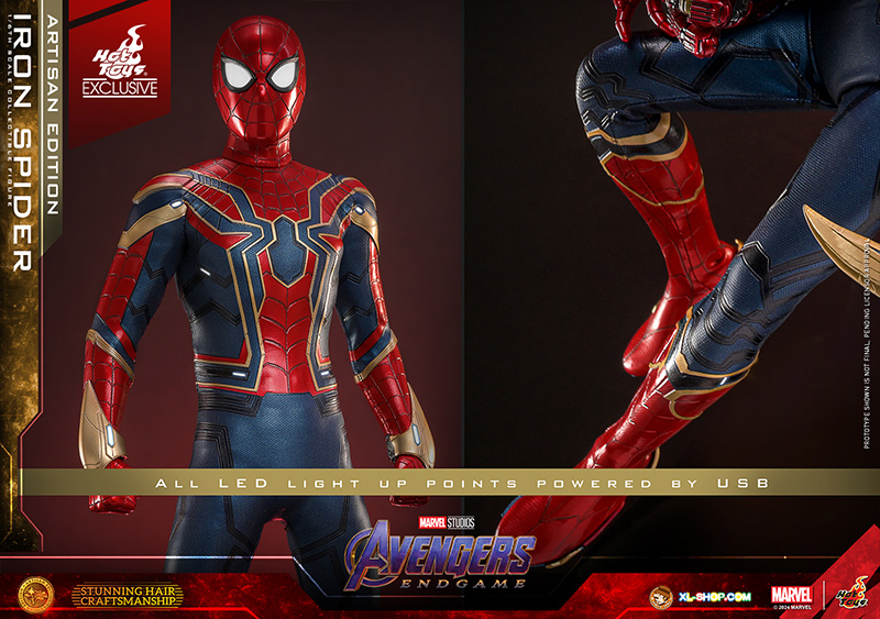 • One (1) newly tailored Iron Spider suit with LED-light up function (white light, USB power operated)