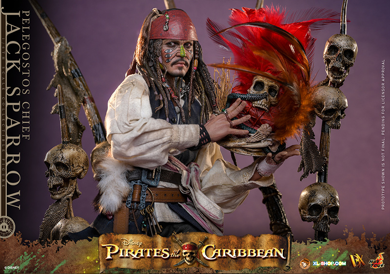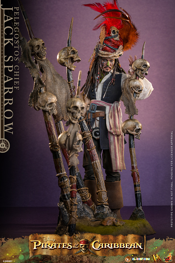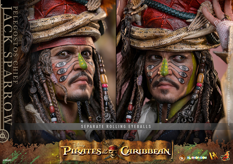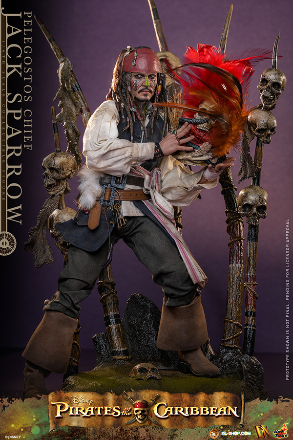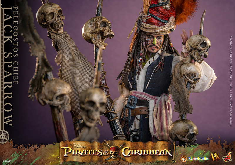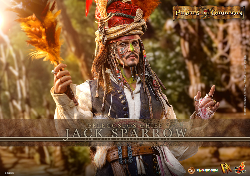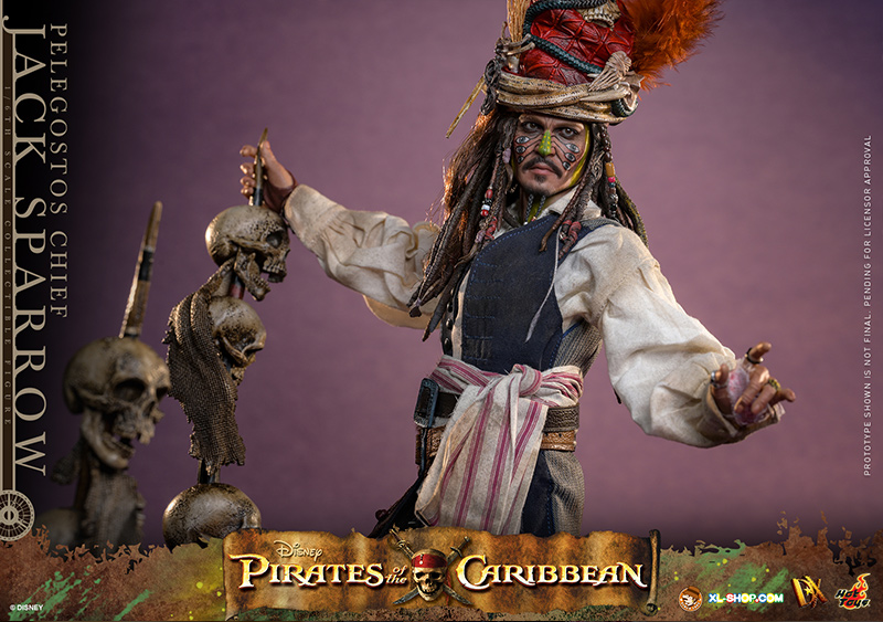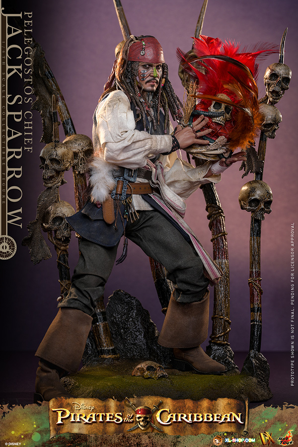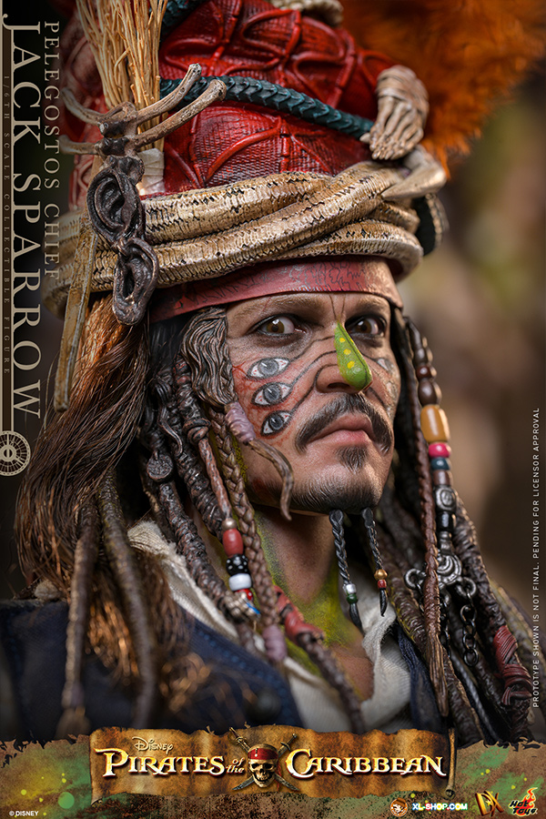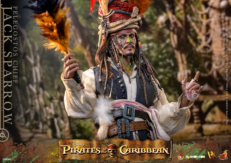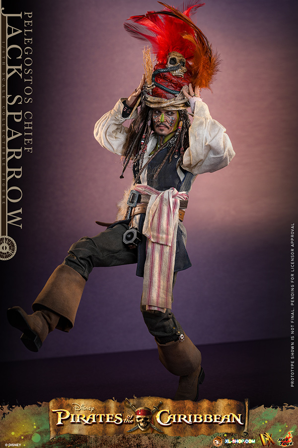 • One (1) Pelegostos tribe headdress (magnetically attachable on the head) with three-colored feathers, accessorized with straw, snakes, bones, and skull