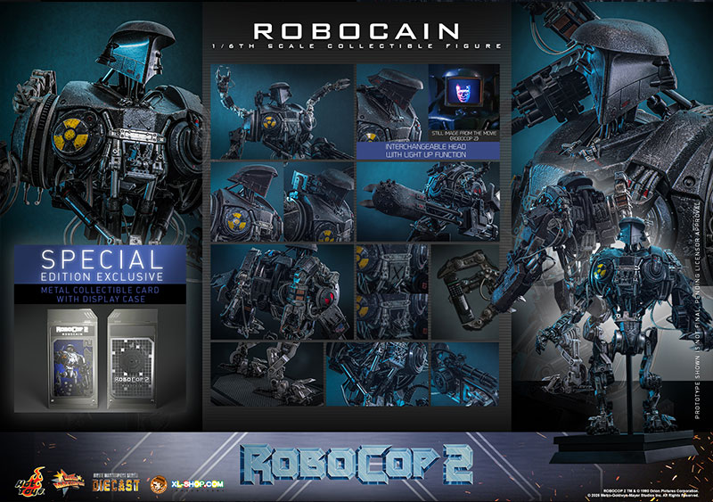 RoboCop is a classic sci-fi action film cherished by fans worldwide. While RoboCop himself is iconic, the film's villains leave a lasting impression. In RoboCop 2, RoboCain emerges as a formidable cyborg, housing the brain of the deceased drug lord, Cain. This fierce mechanical beast is heavily armed with powerful weaponry and cutting-edge technology, making it nearly invincible in battle and posing a major challenge to law enforcement. Today, Hot Toys is thrilled to bring this villainous robot to life with a stunning 1/6th scale RoboCain diecast collectible figure.
