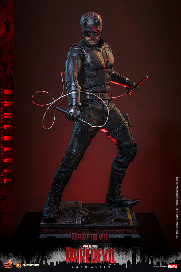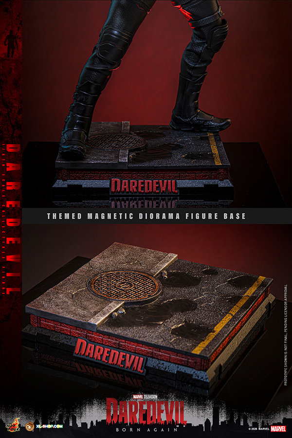 • Specially designed Hell’s Kitchen street-themed magnetic diorama figure base with Daredevil logo