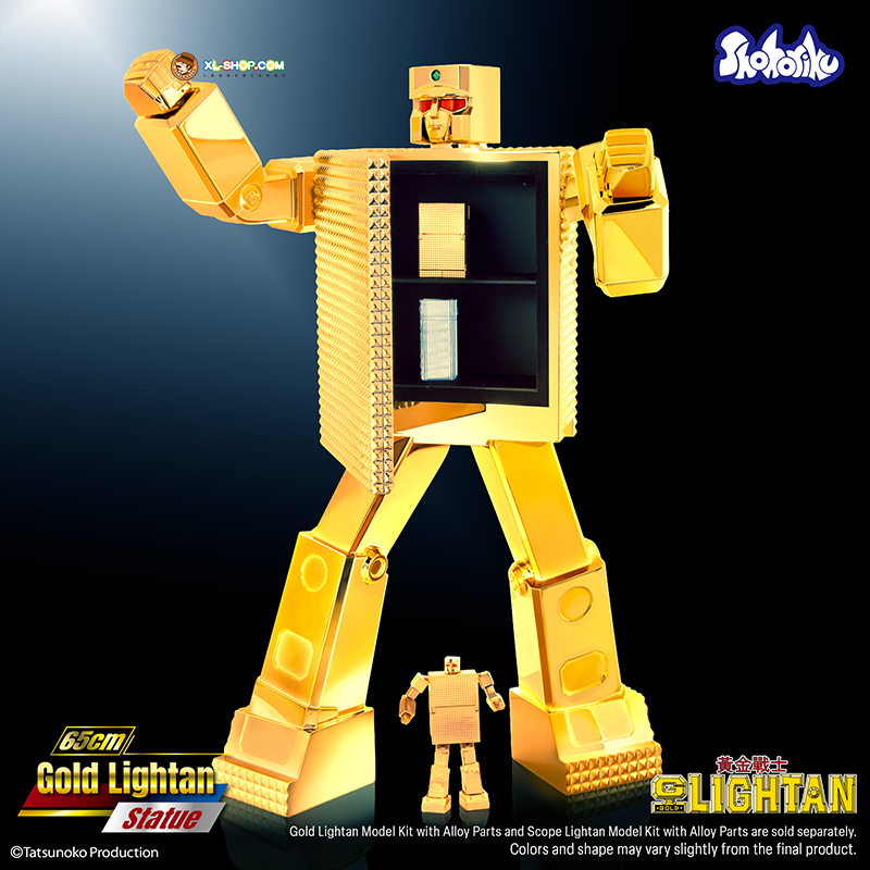 A magnificent recreation of the legendary hero from the timeless classic anime spanning over 40 years—an absolute must-have for fans and collectors! As a home decoration centerpiece, it not only evokes the joyful memories of childhood days watching robot anime but also sparks nostalgic conversations among friends. Shohoriku has ingeniously designed Gold Lightan’s body as a hidden storage compartment, capable of housing all six Gold Lightan team members (in lighter form) produced by Shohoriku. Practical, stylish, and guaranteed to impress guests and old friends alike! Place it in your home or office to instantly elevate the ambiance and become the ultimate focal point! A rare opportunity—don’t miss out! Get yours now and become a ultimate Gold Lightan collector!