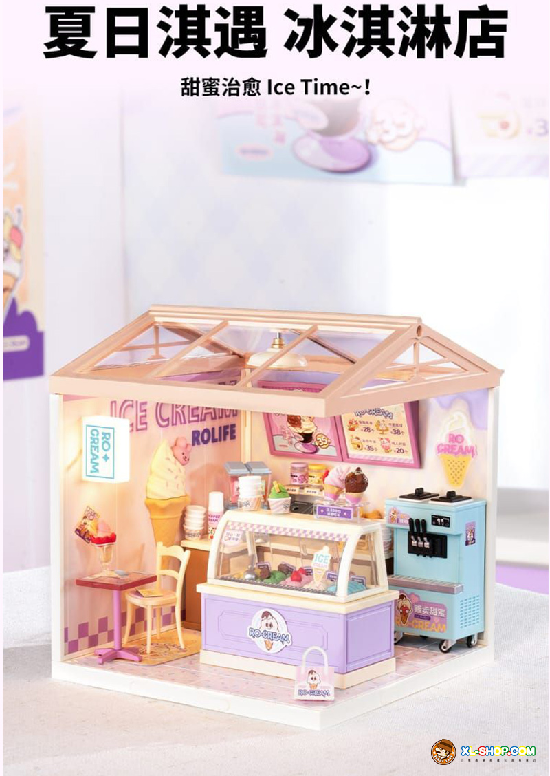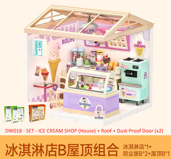 DW018 SET - ICE CREAM SHOP (House) + Roof + Dust-proof Door(x2)