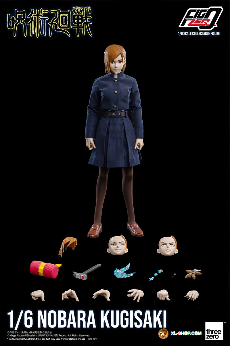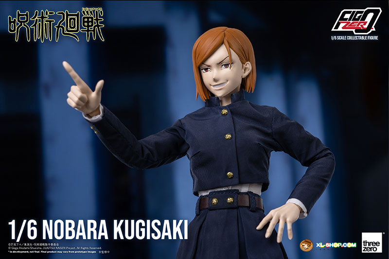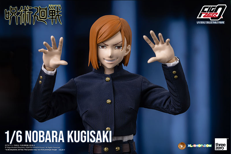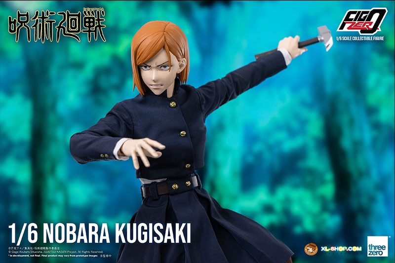 FigZero 1/6 Nobara Kugisaki is approximately 10.6 inches (27cm) tall, and is a fully-articulated collectible figure with over 32 points of articulation. The head is sculpted by renowned sculptor Akinori Takaki, and the materials used for the figure are mainly PVC and ABS.