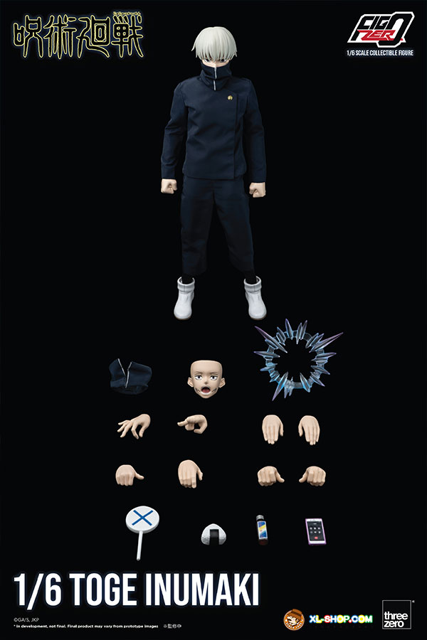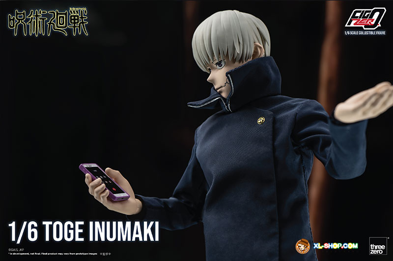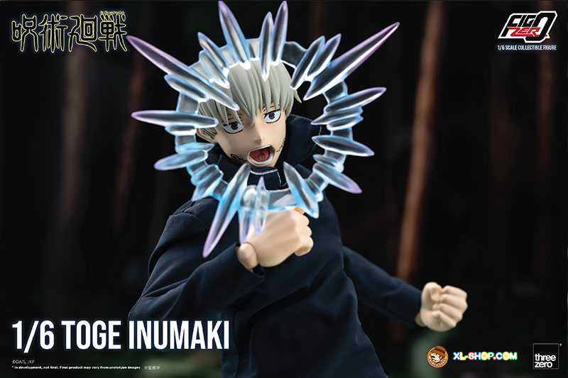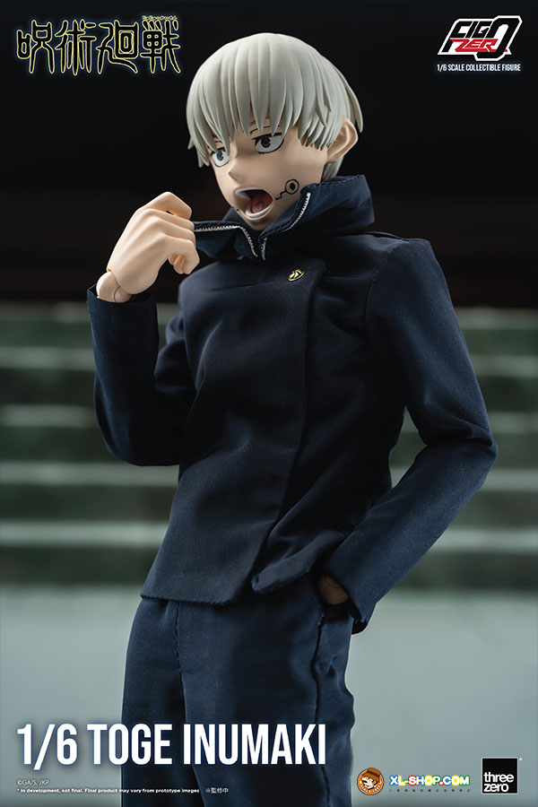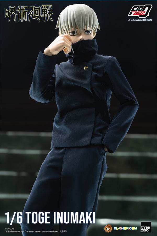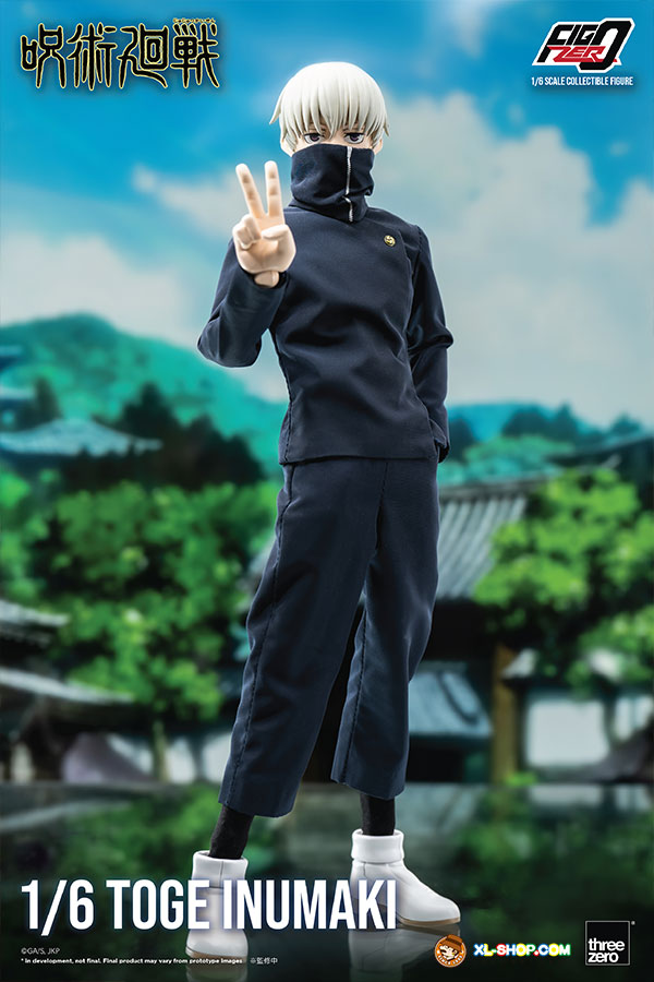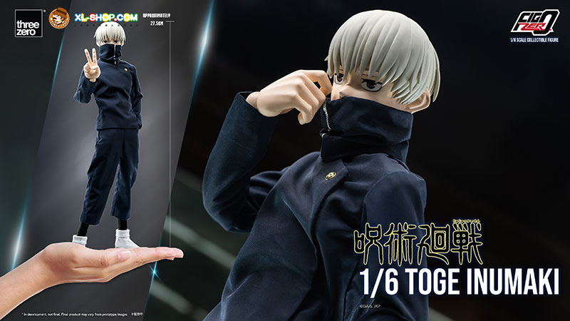 FigZero 1/6 Toge Inumaki is approximately 10.8” (27.5cm) tall, and is a fully-articulated collectible figure made primarily of ABS, PVC, and POM plastics with fabric textiles and over 38 points of articulation.