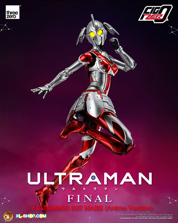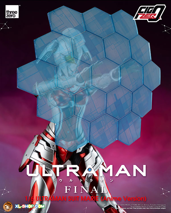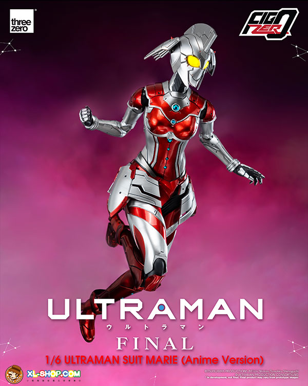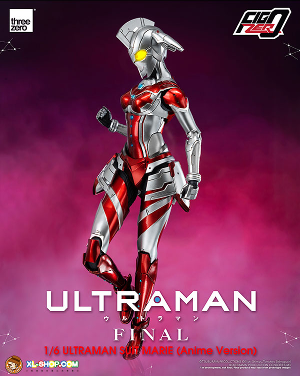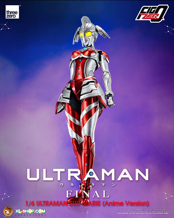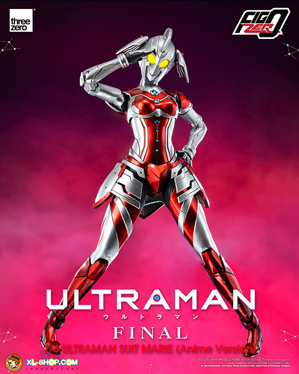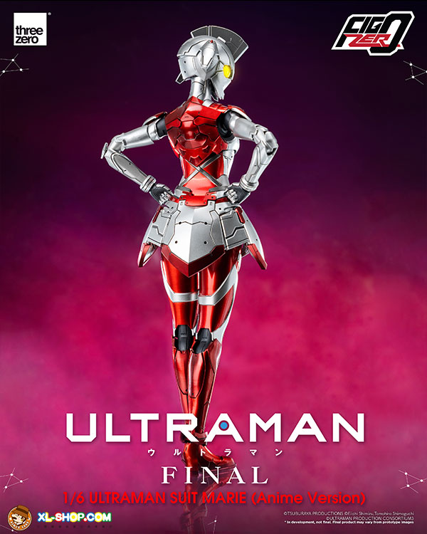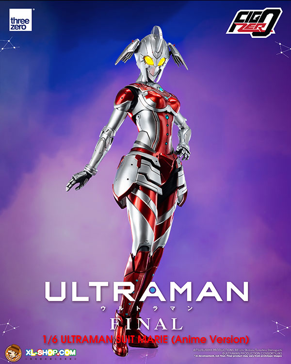 FigZero 1/6 ULTRAMAN SUIT MARIE (Anime Version) collectible figure stands approximately 27cm (~10.6”) tall and includes over 44 points of articulation. This high-end collectible figure features detailed paintwork with expert decal application, and is constructed with a partially die-cast zinc alloy frame and additional metal parts for an incredible tactile feel. LED light-up features are installed in the eyes, the Color Timer on the chest, and stomach area.