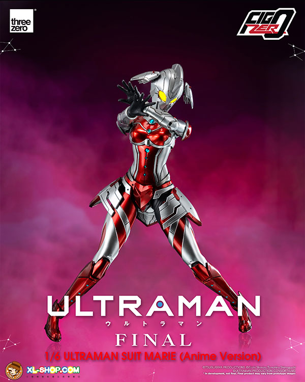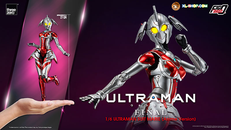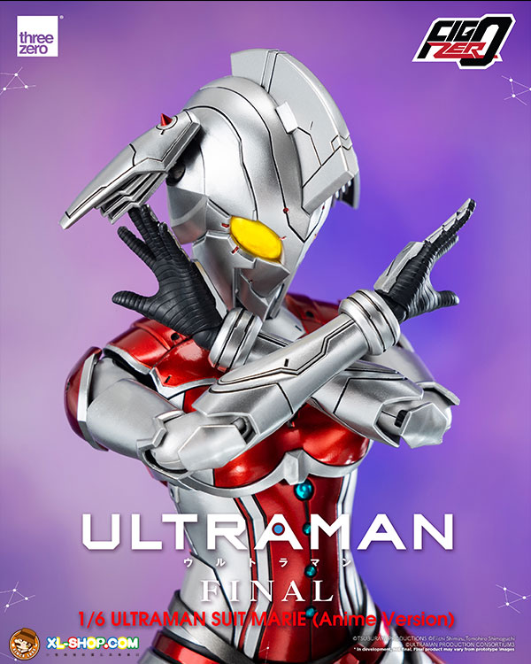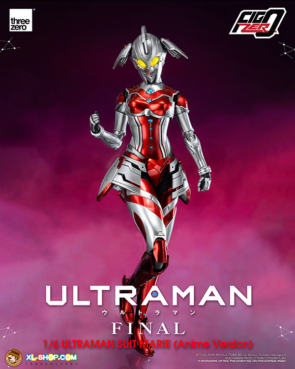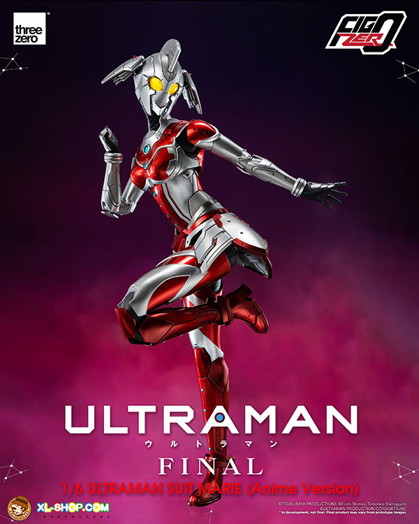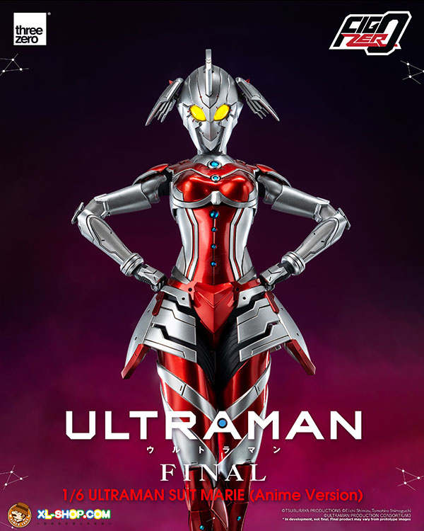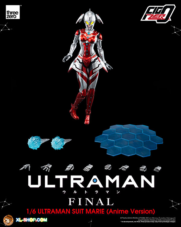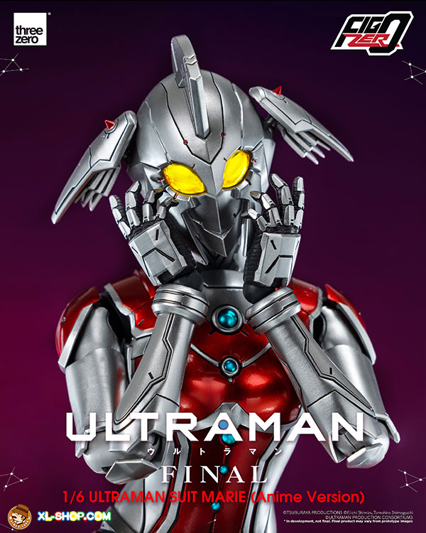 FigZero 1/6 ULTRAMAN SUIT MARIE (Anime Version) collectible figure stands approximately 27cm (~10.6”) tall and includes over 44 points of articulation. This high-end collectible figure features detailed paintwork with expert decal application, and is constructed with a partially die-cast zinc alloy frame and additional metal parts for an incredible tactile feel. LED light-up features are installed in the eyes, the Color Timer on the chest, and stomach area.
