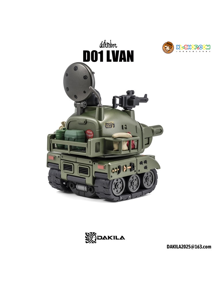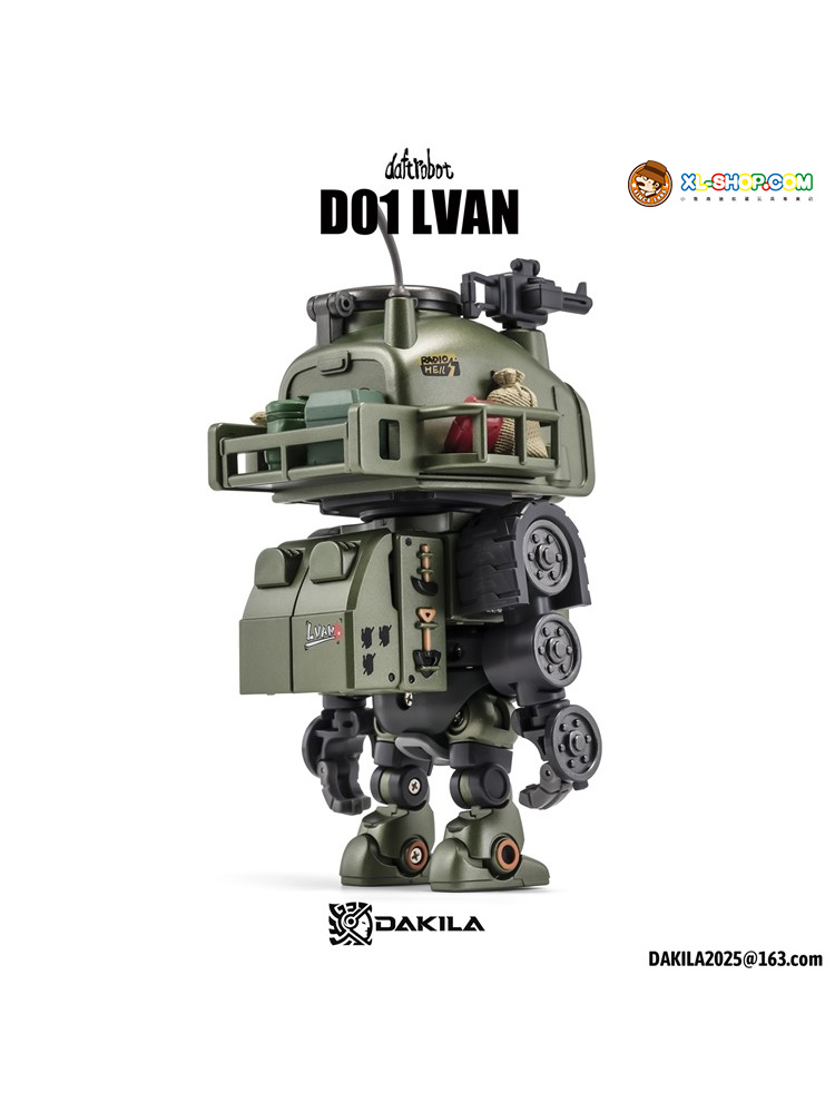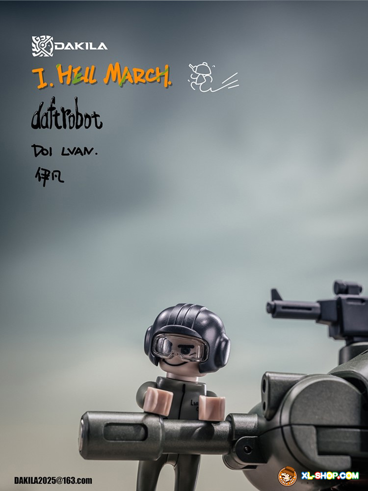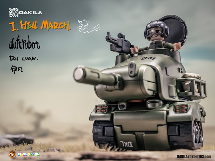 Dakila presents the Daftbots Series Hell March LVAN action figure! This LVAN figure has the ability to convert between a robot and a tank. In robot form, LVAN has mobility in his arms, legs, and even his eyes! In tank form, he can roll smoothly over flat surfaces. A small figure is included that can sit in both robot and tank modes.