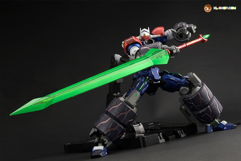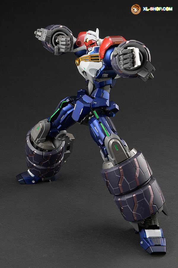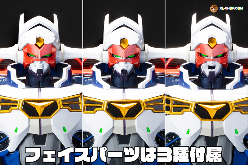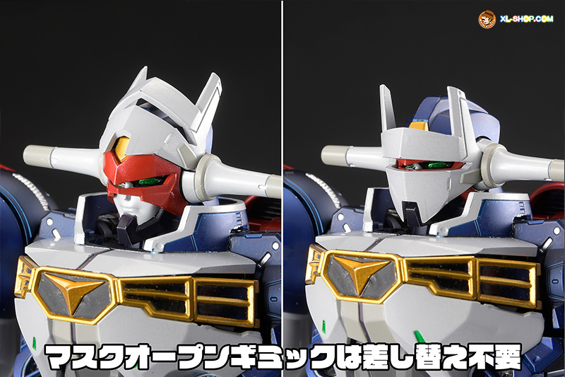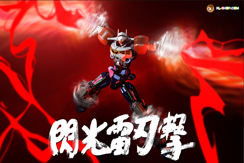 Three interchangeable face parts are available: ""normal,"" ""gritting teeth,"" and ""shouting"". The face mask opens and closes without needing to be swapped, faithfully reproducing the impressive gimmick from the show. The Hyper Dendoh Denchi is interchangeable, and the articulation of the turbines in both arms and legs are meticulously crafted, with attention paid to even the smallest details. The final weapon, ""Akatsuki no Odachi,"" is also included, allowing you to proudly recreate its climactic appearance.