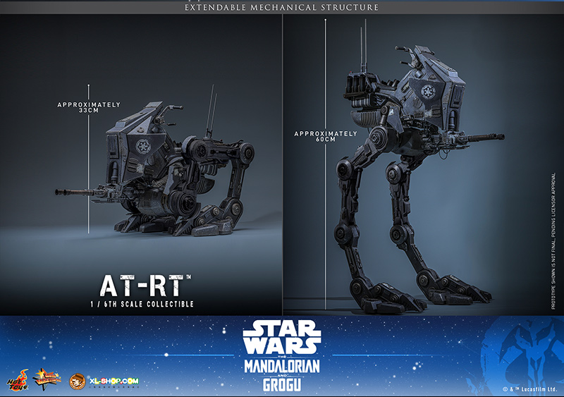 Today, Hot Toys is excited to introduce the 1/6th scale AT-RT™ Collectible. The walker is brought to life with fine paint applications and specially applied weathering effects that showcase a rusty, battle-worn aesthetic. It is in a steel gray colorway with an Imperial crest on the exterior. Measuring up to a massive 60 cm in height when fully extended and 33 cm when not elevated, it features a newly developed mechanical structure with over 10 points of articulation. The mechanical legs and front blaster cannon are articulated, allowing for enhanced poseability. The driver’s seat comes with articulated grips and footrests, and perfectly fits our 1/6th scale figures from The Mandalorian & Grogu™ collection, such as the 1/6th scale Imperial Remnant AT-RT Driver™ Collectible Figure or the 1/6th scale The Mandalorian™ Collectible Figure.
