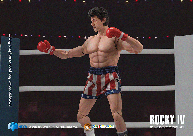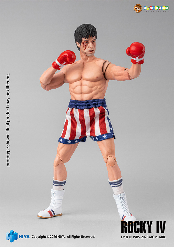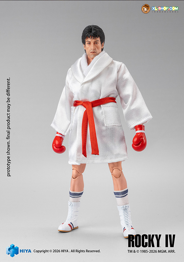 The Burning Spirit of a Champion – Rocky Balboa! From Rocky IV (1985), the legendary Italian Stallion joins Hiya Toys EXQUISITE SUPER Series as a 1/12 scale action figure.