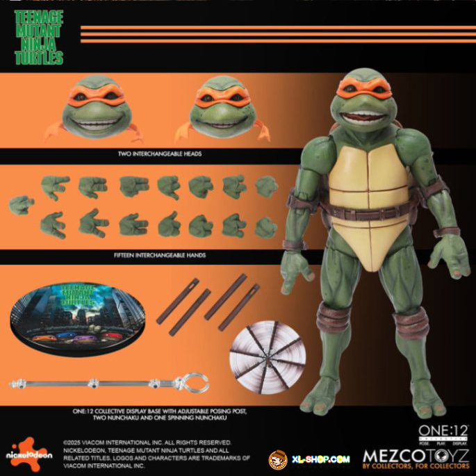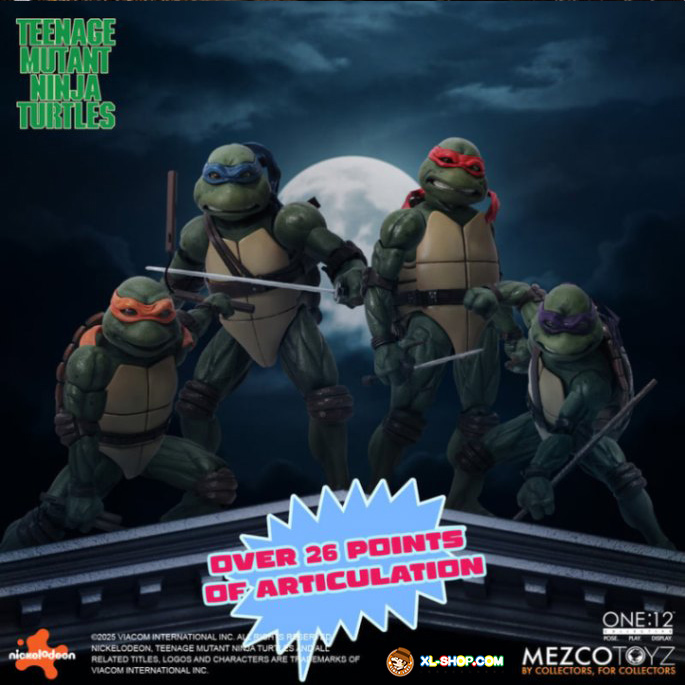Born in a mysterious canister of mutagenic ooze and trained by Master Splinter, Leonardo, Raphael, Donatello, and Michelangelo leap from the movie and into highly detailed, film-accurate form. Each Turtle features a unique head sculpt, a One:12 Collective articulated body for expressive posing, and separate rolling eyeballs that reproduce the film’s iconic looks — from stoic to pizza-loving.