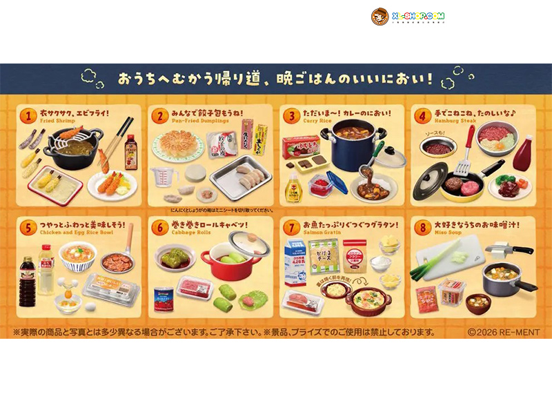 Re-Ment's latest "Petite Sample" lineup features delicious home-cooked meals! Just imagine coming home from school or work, opening the door, and smelling that great aroma that means dinner is waiting for you -- this series of vignettes will bring that feeling back. There are eight different items to collect and trade, and you'll get one of each. Order yours today!
