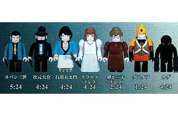 Latest Lupin the 3rd #1 characters kubricks from the Castle of Cagliostro series 1. Size around 2.4 inches tall. There is a total of 7 types, you will get one of them for this order.